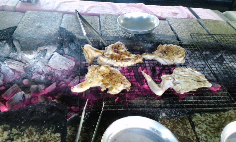 鶏の半身をおばあちゃんがこだわりの塩こしょう加減で炭焼きしてくれるお店です。