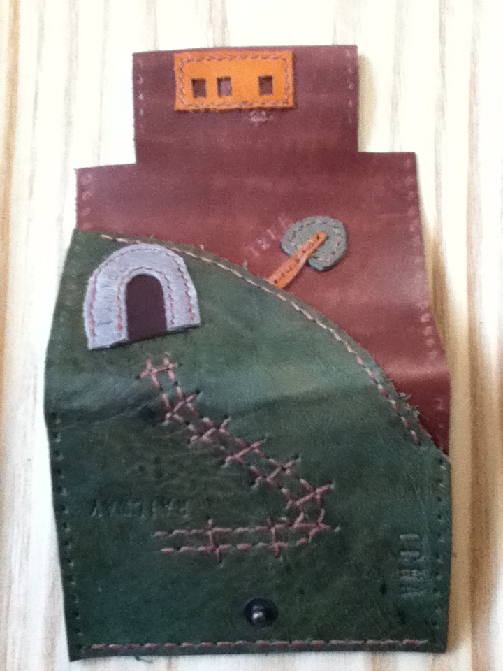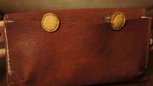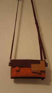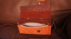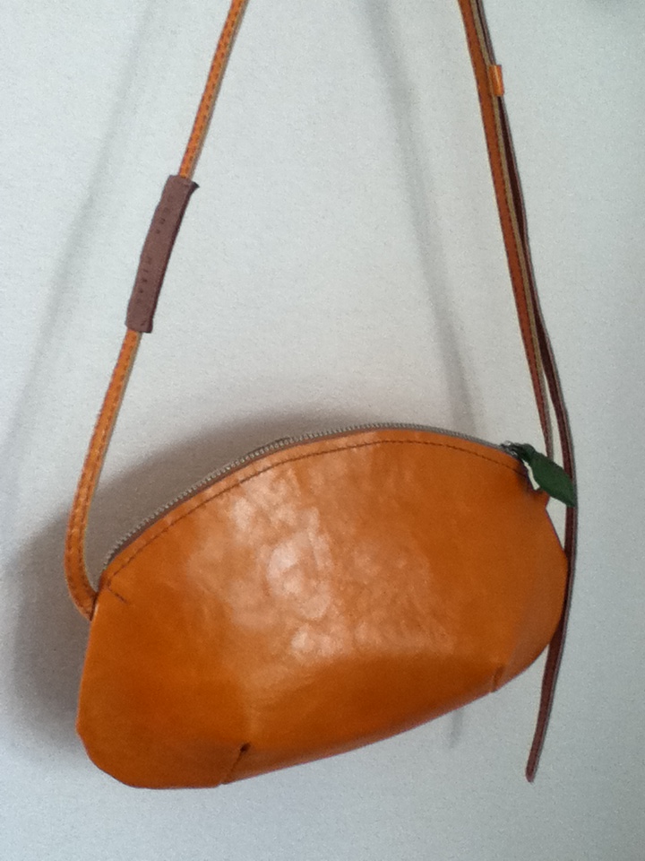 オレンジの牛革がなんとも良いのです。ファスナーにちょこんと葉っぱ。