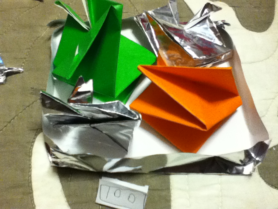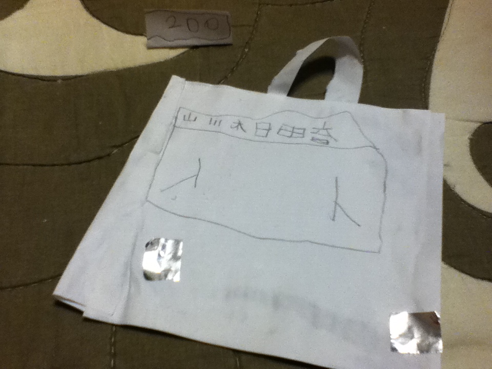 『こちらはカエルカブト。じぶんでかってにつくりました。100えんです。』