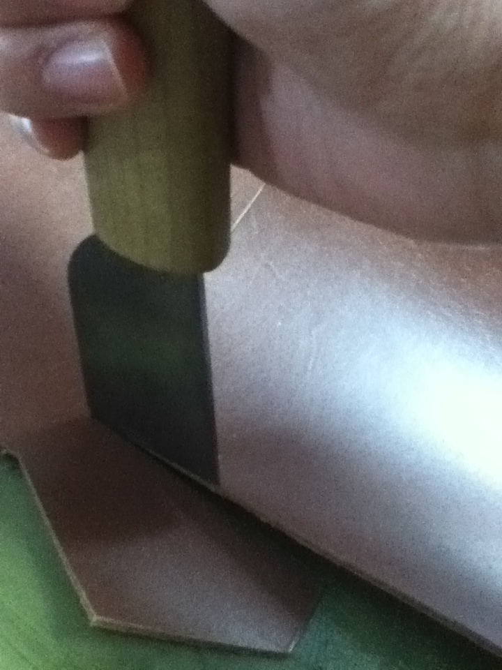 電車は厚革なので、断面が綺麗に出るように、一気に、力もなかなか必要です。