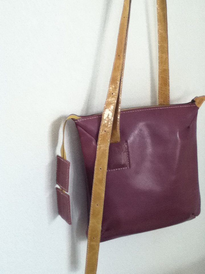 しかくも上品な紫の牛革×からし色の仔牛革。仔牛は柔らかーいです。